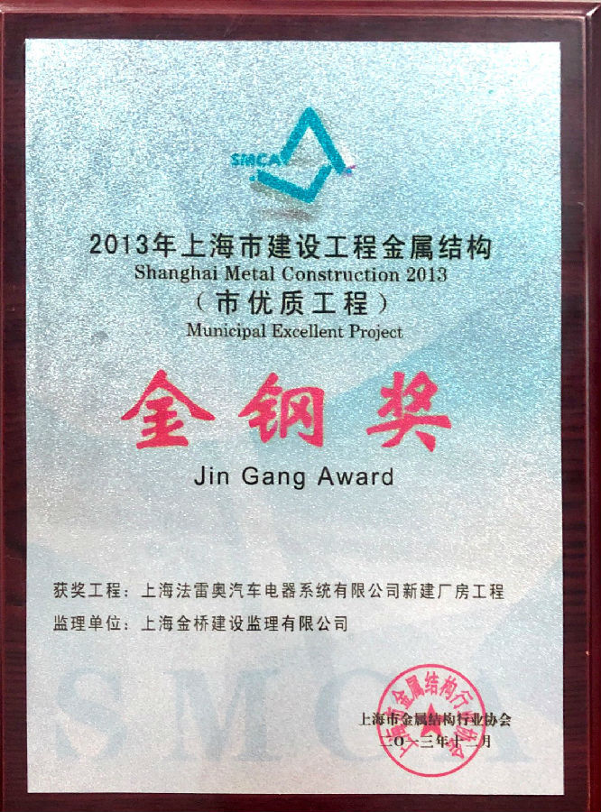上海法雷奥汽车电器系统厂房工程金钢奖